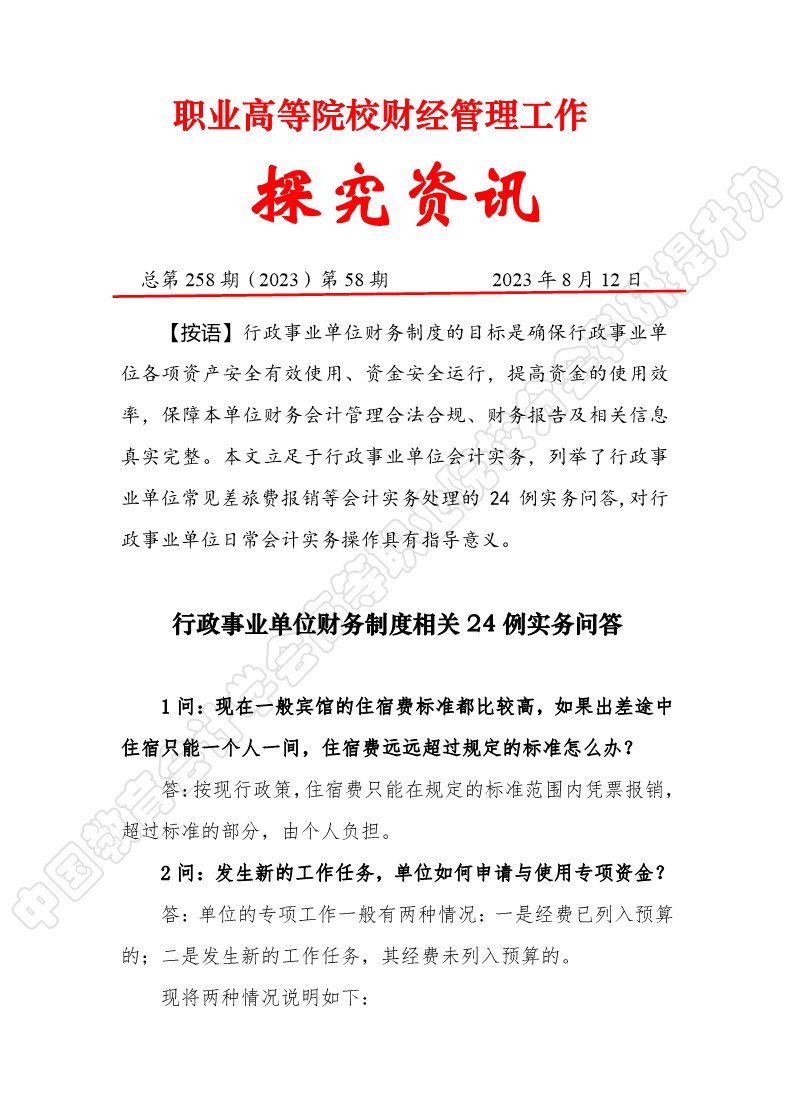 探究资讯258:行政事业单位财务制度相关24例实务问答