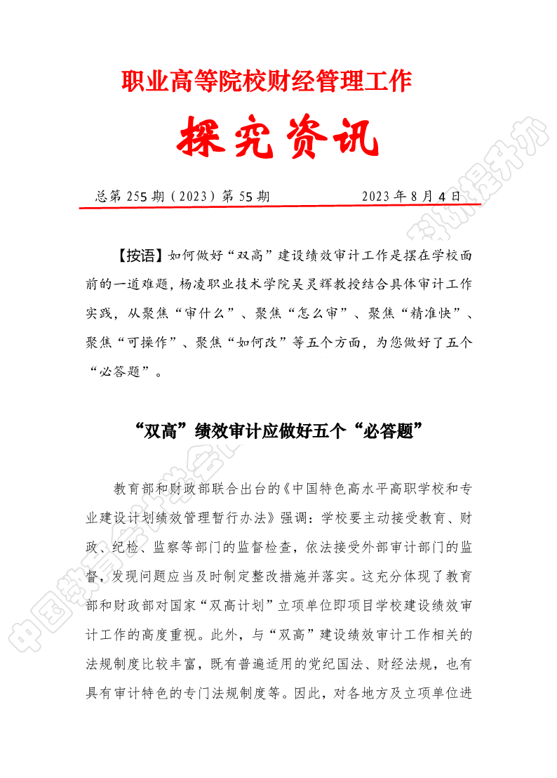 探究资讯255:“双高”绩效审计应做好五个“必答题”