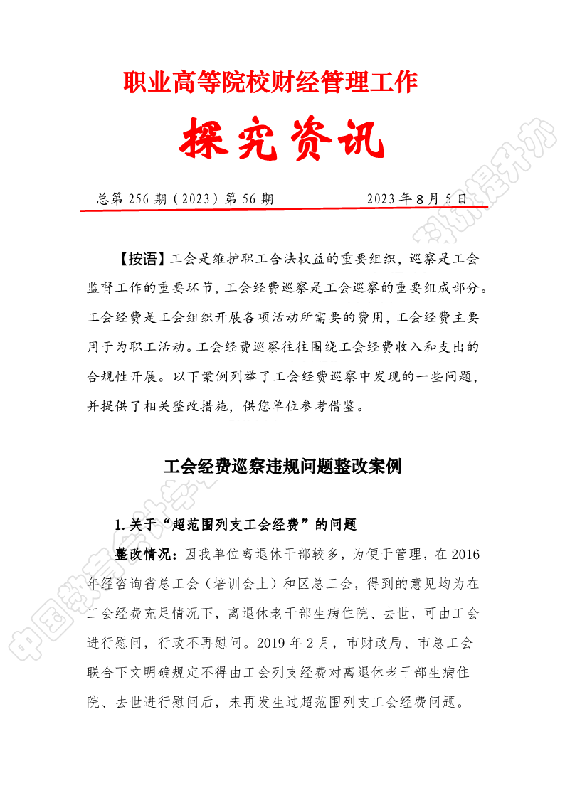 探究资讯256:工会经费巡察违规问题整改案例