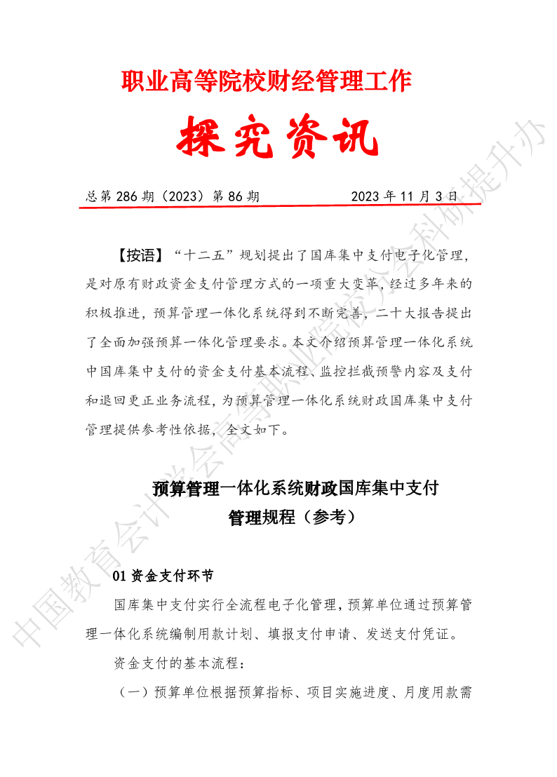 探究资讯286:预算管理一体化系统财政国库集中支付管理规程