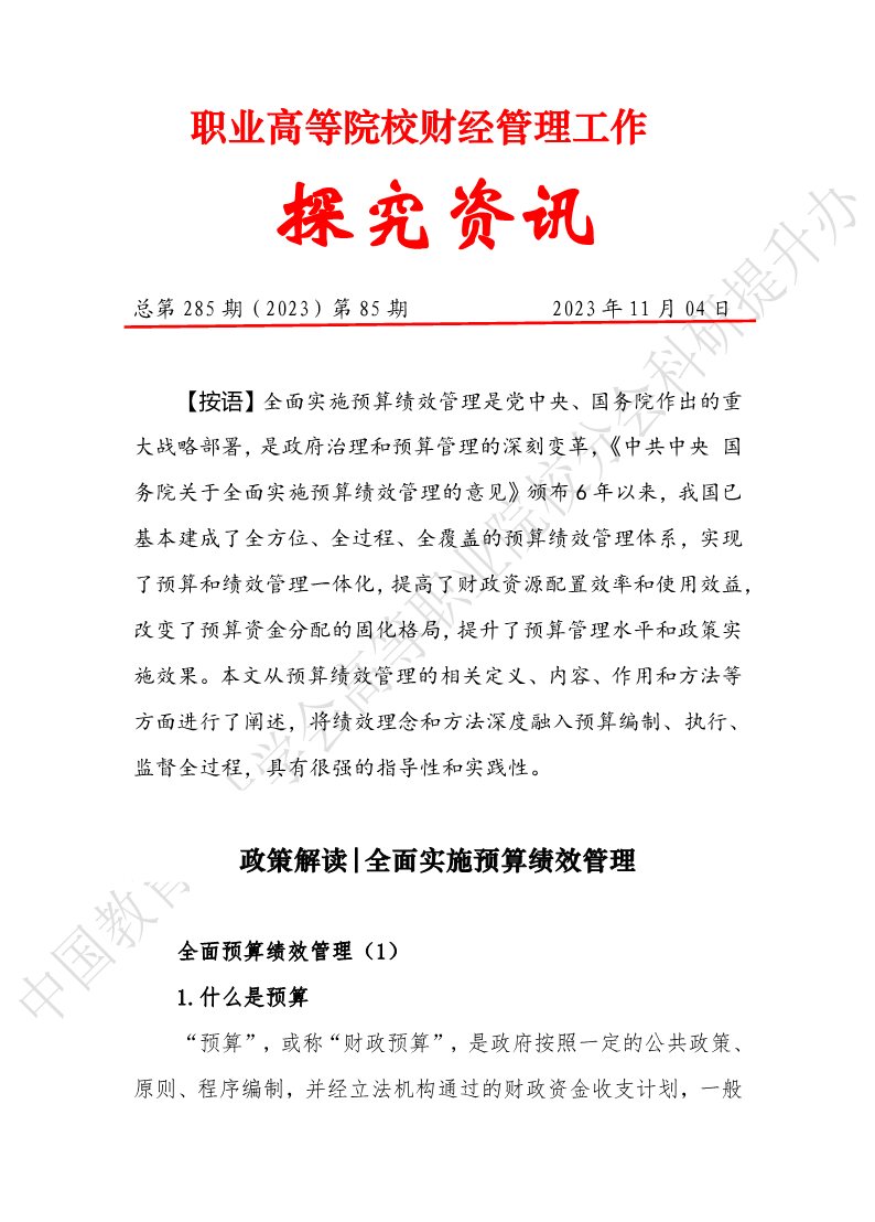 探究资讯285: 政策解读全面实施预算绩效管理