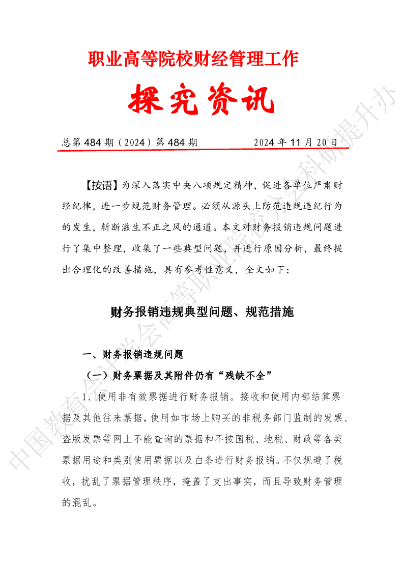 探究资讯484:财务报销违规典型问题、规范措施