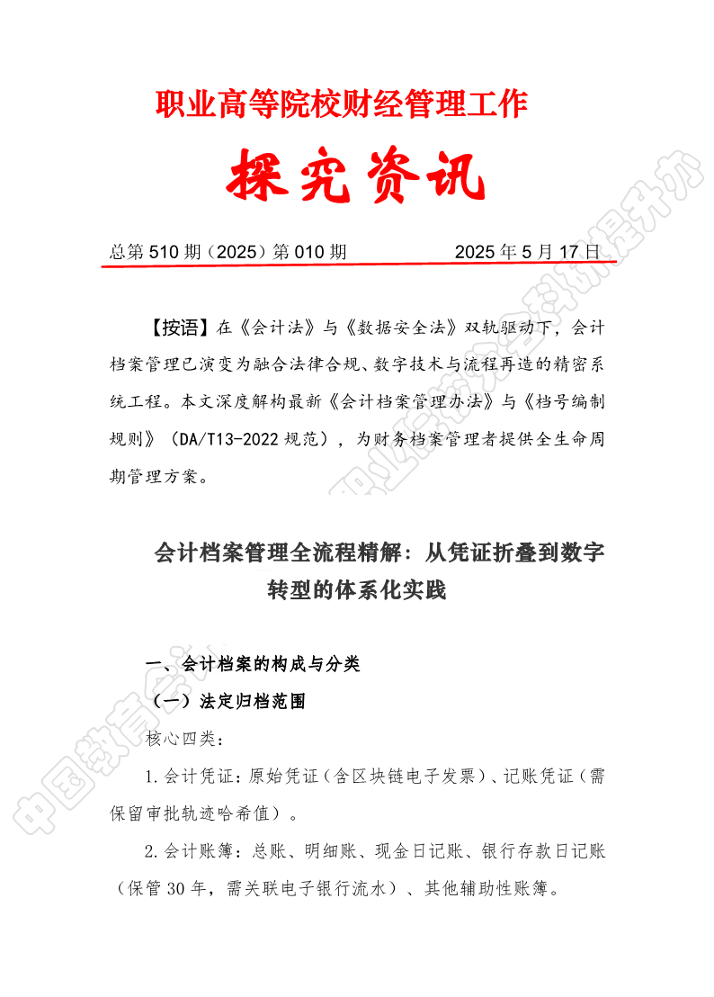 探究资讯510:会计档案管理全流程精解:从凭证折叠到数字转型的体系化实践