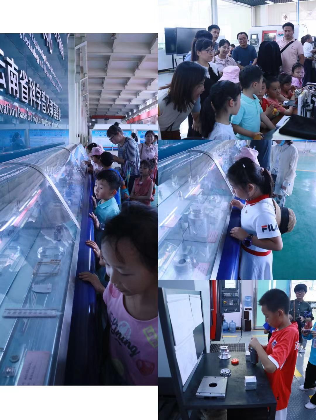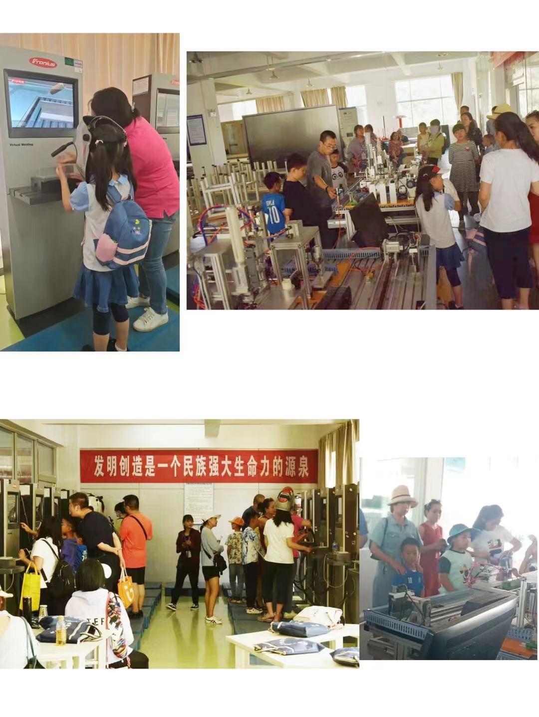 在科普实训基地,小朋友们看着展柜中陈列的机械部件、大力神杯、鸟巢等,不由发出声声赞叹“哇,这些东西是怎么做出来的呀?”“妈妈,你们学校有这么多好东西。”