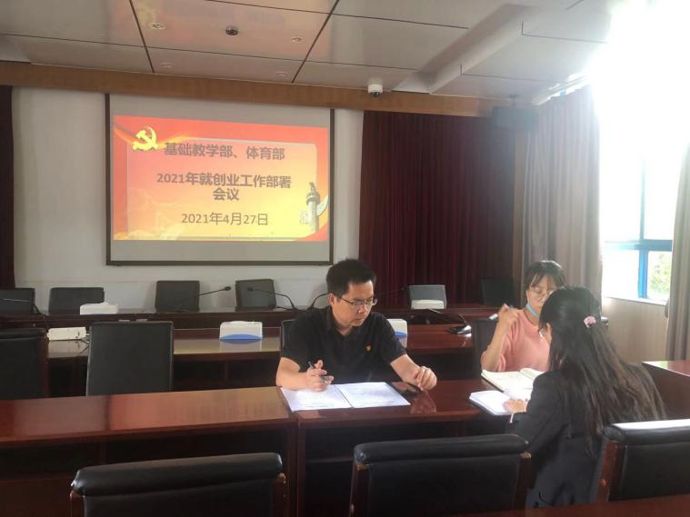 根据学院就创业工作部署会会议要求,进一步完成好2021年就创业工作目标,2021年4月27日,基础教学部、体育部在办公楼300召开了2021年部门就创业工作部署会,会议由支部书记刘永刚同志主持。