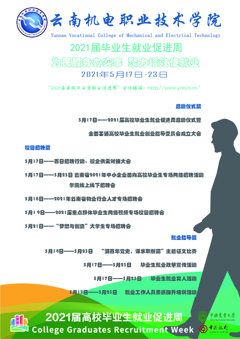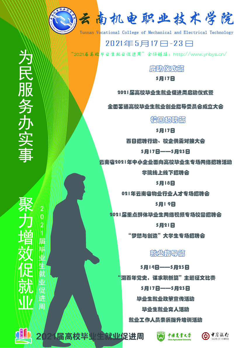 乐鱼官方网站2021届毕业生就业促进周 来源: 发布时间:2021-05-17 15:04:05 浏览次数: 次 【字体:小 大】 为贯彻落实党中央、国务院“稳就业”“保就业”决策部署,深入开展“我为群众办实事”实践活动,根据教育部《关于开展2021届高校毕业生就业促进周活动的通知》(教学厅函【2021】17号)和省教育厅相关要求,我校决定开展2021届毕业生就业促进周系列活动,相关内容如下:乐鱼官方网站2021届毕业生就业促进周专项方案 分享到: 【打印正文】
