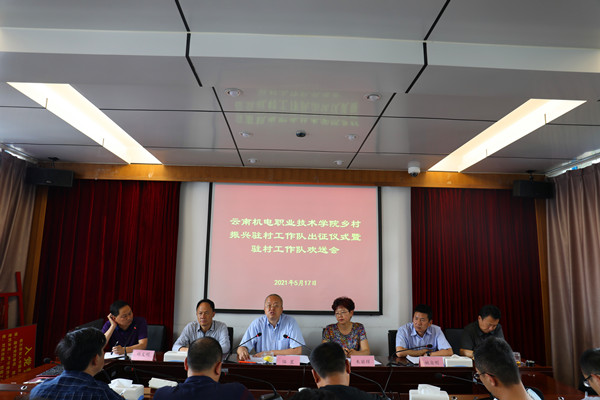 为进一步巩固拓展脱贫攻坚成果,服务乡村振兴,我校积极响应党中央号召,严格落实省委、省扶贫开发办公室相关要求,积极向重点乡村选派优秀驻村工作队员。2021年5月17日,学校举行乡村振兴驻村工作队出征仪式暨驻村工作队行前欢送会,会议由分管扶贫(乡村振兴)工作的副院长祖文明主持,学校领导、各相关部门负责人、乡村振兴办全体成员参会为新选派的驻村工作第一书记(工作队长)潘忠志、驻村工作队员肖体剑、张顺勇、张强、金松五名同志饯行。