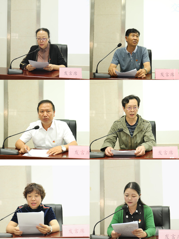 交流发言阶段,5个二级学院党总支书记和马克思主义学院直属党支部副书记围绕学习习近平总书记在庆祝中国共产党成立100周年大会上的重要讲话精神作交流发言。