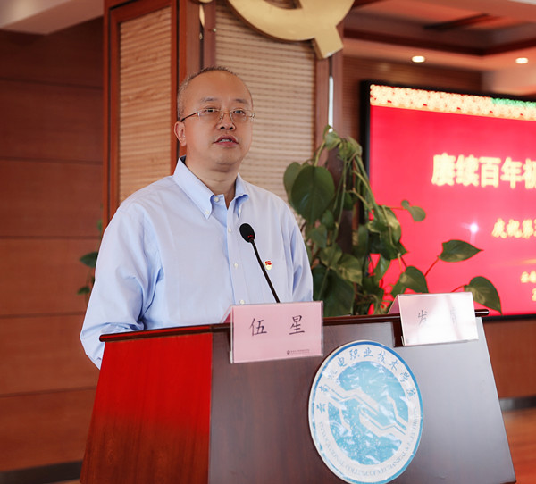 党委副书记、院长伍星在致辞中向辛勤工作的全体教师和离退休老同志们致以最诚挚的感谢和最亲切的问候,回顾了一年来在学校党委的坚强领导下,取得的办学成果和党史学习教育“我为师生办实事”取得的成效,他希望全体教师把党史学习成效转化为攻坚克难、干事创业的不竭动力,并提出四点希望:一是坚守初心,勇当使命,将学习教育活动向实处落地,做新时代党和人民满意的好老师。二是以德修身,铸魂育人,争做职业教育中的“时代楷模”“最美教师”。三是以技立身,匠心育人,牢记“克尽厥职、笃行技精”之校训,大力弘扬执着专注、精益求精、一丝不苟、追求卓越的工匠精神。四是尊廉崇洁,清正育人,坚守廉洁清正的品质,严格遵守教师职业行为十项准则,做清廉党风、清明行风、清净校风、清正教风、清新学风五位一体的“清廉机电”建设者、实践者。