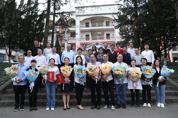 会上,全体参会教师观看了《黄大年 时代楷模》专题片。教师代表杨继玺、董钟慧分别进行了题为《机电教师学党史,为党育人强师风》、《赓续百年初心,担当育人使命》的主题发言。校领导为从教30年的教师代表、获省部级以上奖项教师代表颁发荣誉证书,会后,进行合影留念。