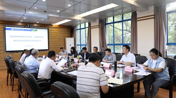 2021年9月22日下午,云南教育国际交流协会、卓雅教育集团、美誉教育集团领导一行到我校考察交流。我校党委副书记、校长伍星,党委委员、副校长黄勇林,党委委员、副校长黄晓明,相关职能部门及部分二级学院负责人参加座谈交流。会议由副校长黄勇林主持。