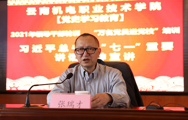 张瑞才书记从“提高认识”、“如何理解”、“如何学习”三个方面,对习近平总书记“七一”重要讲话精神进行了精彩、深入的解读。深刻阐释了习近平总书记在庆祝中国共产党成立100周年大会上重要讲话的理论意义、政治意义、实践意义;生动解读习近平总书记在中国共产党成立100周年大会上讲话精神的科学内涵、精神实质和实践要求;以精彩的案例阐述中国共产党建党百年的四个历史阶段、取得的伟大历史成就,以及中国共产党 “坚持真理、坚守理想,践行初心、担当使命,不怕牺牲、英勇斗争,对党忠诚、不负人民”的伟大建党精神;系统阐释了习近平总书记重要讲话中提出的以史为鉴、开创未来的 “九个必须”的丰富内涵。并表示要做到原原本本学学,理论联系实际学,做到学思悟一致,知信行统一。