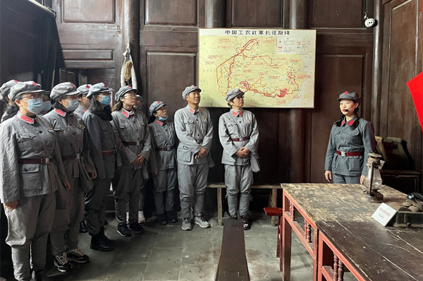 下午,参训人员赴“鸡鸣三省”纪念碑和威信县水田镇中央红军总部驻地旧址(花房子中央政治局常委会会议会址)进行了现场学习,这里是扎西会议的重要组成部分。讲解员激情澎湃的解说,让参训学员再次加深了对扎西会议的重要地位的认识,扎西会议是遵义会议的继续和最后完成,也是长征途中的重要转折点之一。参训人员认真聆听了改组党中央的领导特别是军事领导和作出的一系列事关党和红军生存和发展的重大部署,在陈旧朴素的文物中感悟老一辈无产阶级革命家无私奉献的精神和智慧之光。