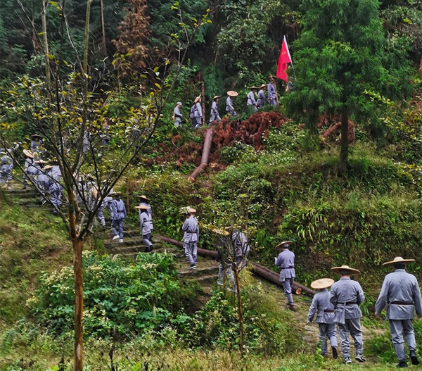 在参观完 “鸡鸣三省”纪念碑后,学员们来到了威信县水田镇水田村三合头关口坳,一起深情朗诵毛泽东同志的《七律·长征》,重走了红军在扎西走过的长征路,体会老一辈无产阶级革命家的艰辛与不易,以及今天幸福生活的来之不易。