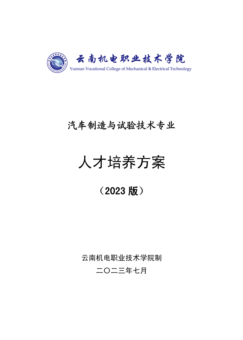 汽车制造与试验技术专业人才培养方案