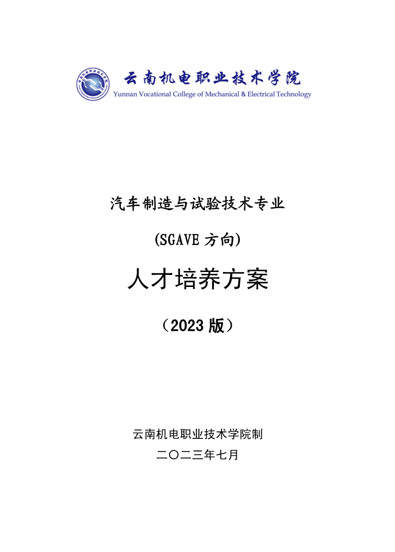 汽车制造与试验技术(SGAVE)专业人才培养方案