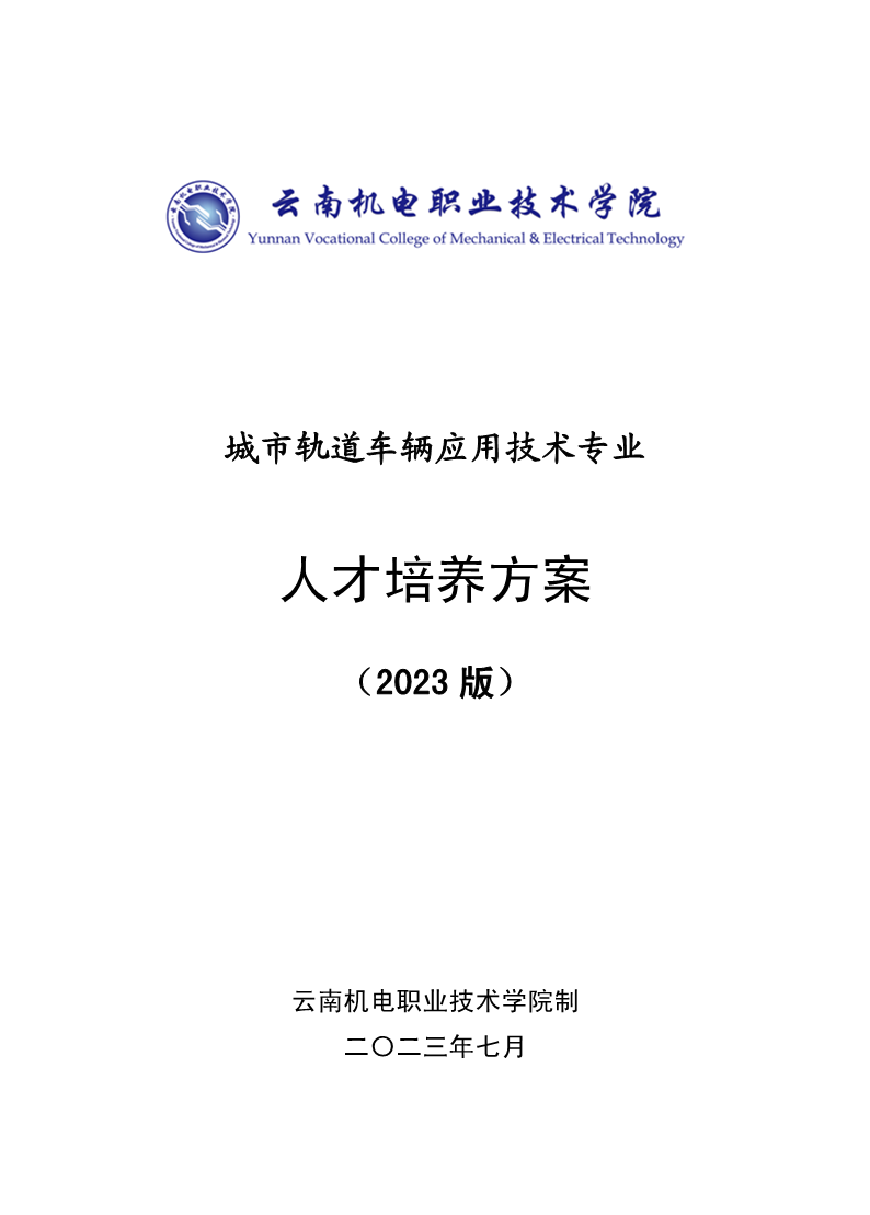 城市轨道车辆技术专业人才培养方案