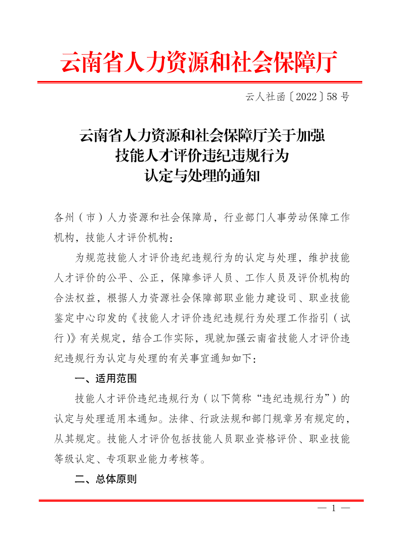 云南省人力资源和社会保障厅关于加强技能人才评价违纪违规行为认定与处理的通知