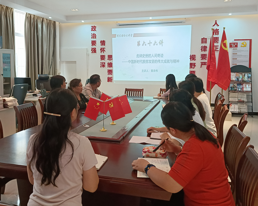 2021年9月24日14:30,马克思主义学院组织所有教师观看全国高校思想政治理论课教师“周末理论大讲堂”第六十六讲。本次理论大讲堂由中国国际扶贫中心副主任、国务院扶贫办贫困村灾后恢复重建办公室副主任,华中师范大学兼职教授黄承伟主讲。