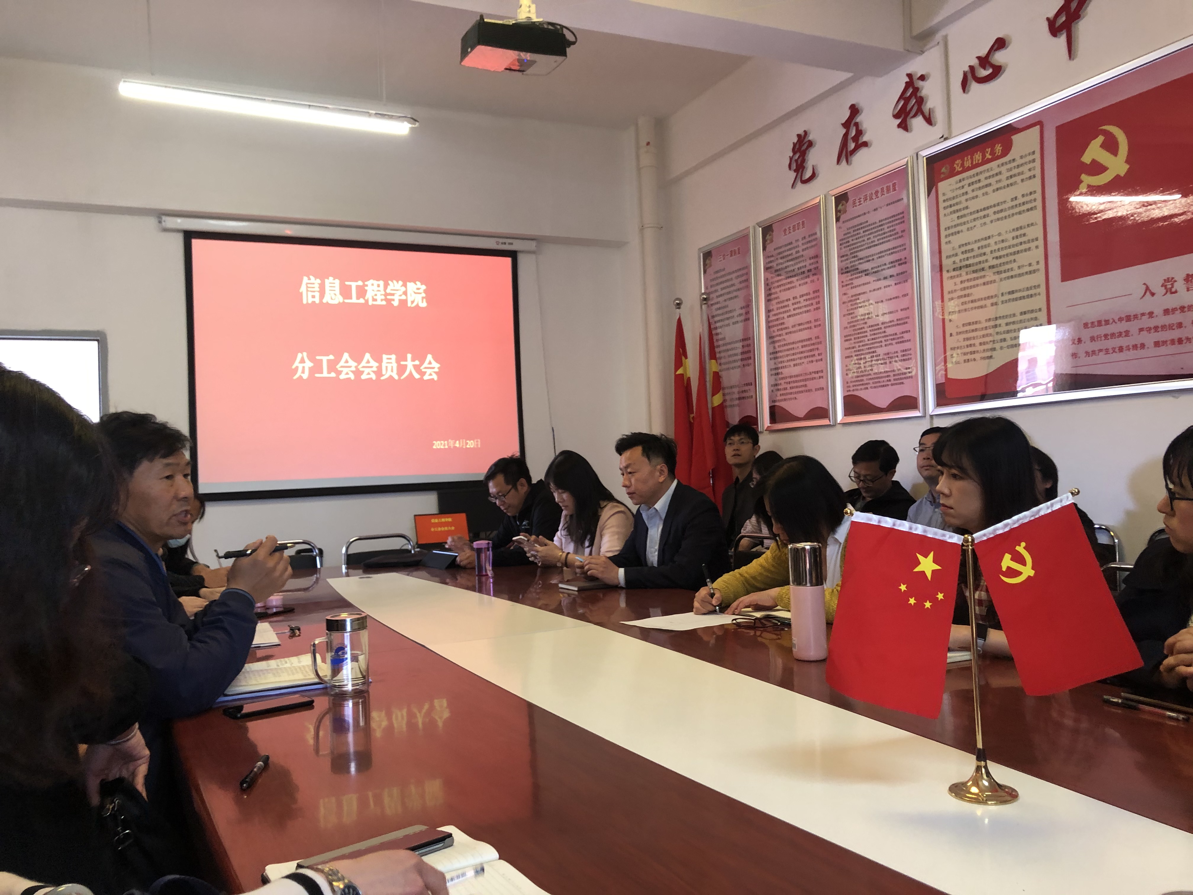 根据《乐鱼官方网站基层分工会换届选举工作的通知》要求,信息工程学院于2021年4月20日在教学楼d503党员活动室召开工会委员换届选举大会。会议由党总支王有全书记主持、全体教师参加。