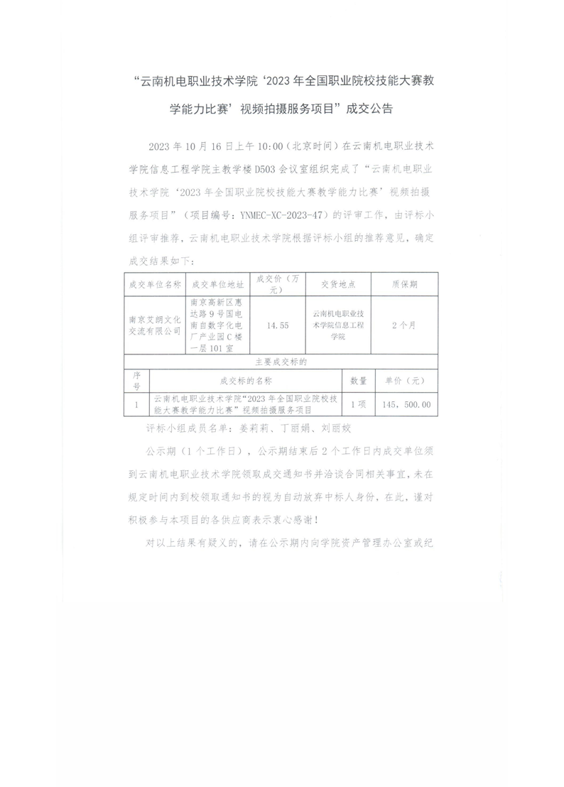 “乐鱼官方网站‘2023年全国职业院校技能大赛教学能力比赛’视频拍摄服务项目”成交公告 来源: 发布时间:2023-10-16 20:22:14 浏览次数: 次 【字体:小 大】 分享到: 【打印正文】