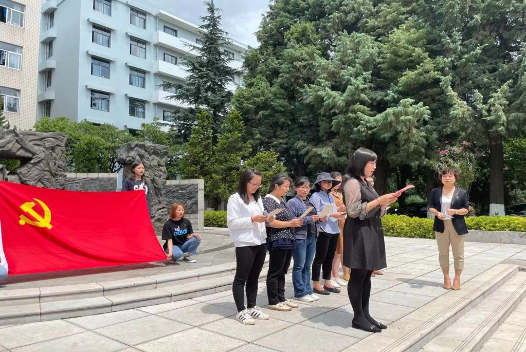 走出博物馆,在“一二·一”运动标志广场前,党总支书记杨萍为5、6月过政治生日的同志颁发生日贺卡,除了对各位同志的祝贺外,杨老师提到,新时代,新征程,希望大家不忘初心,牢记使命,永远奋斗!