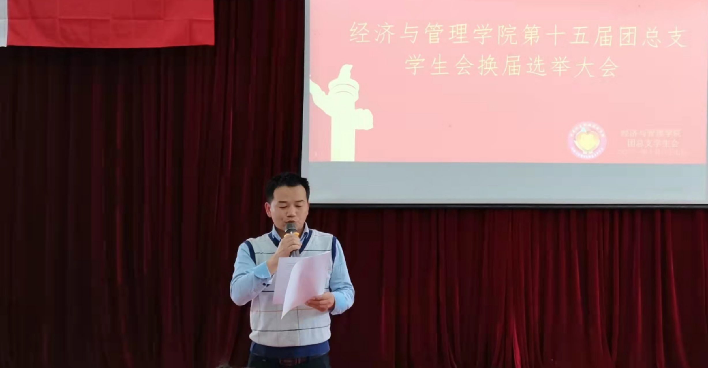 10月27日中午,经济与管理学院团总支、学生会第十次学生代表大会顺利召开学院党总支副书记文世敏、团总支书记阮智君、学管干事董博、就业干事向敏、专职辅导员钟怀滴和250名学生代表参会。各二级学院团总支、学生会负责人及学生代表应邀参与。