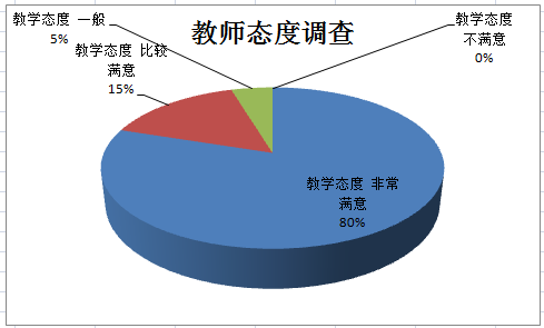一、教学态度方面。大部分同学认为老师教学态度端正,按学校要求积极开展教学工作,有较强的敬业精神。学生对老师的教学态度满意度达到95%。如图1所示。
