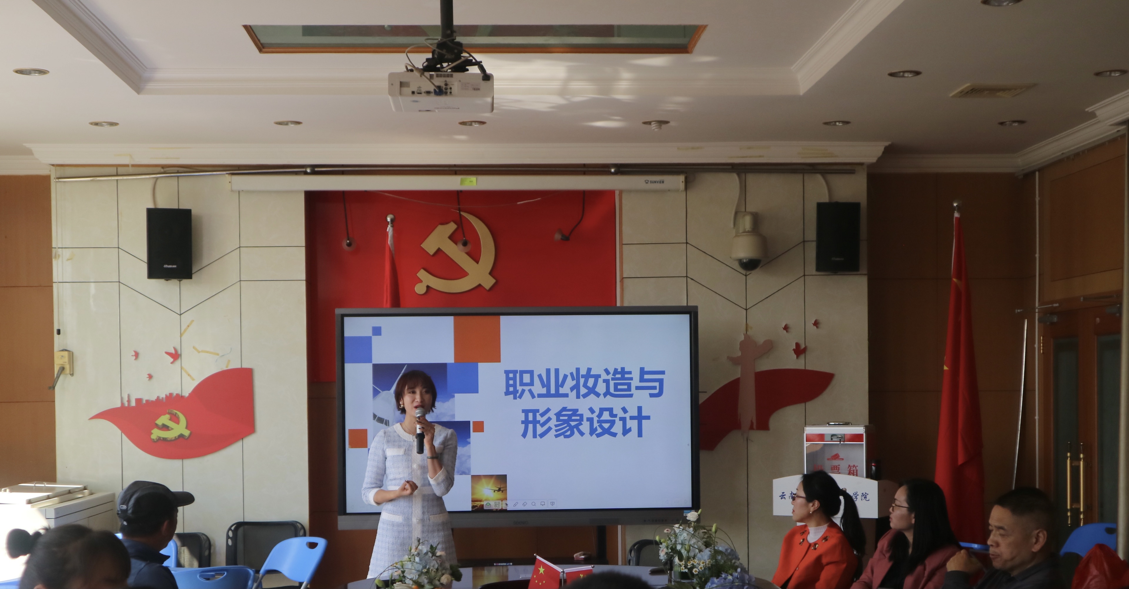 教研活动安排了三个寓教于乐的特色主题分享环节,包括女士日常化妆程序、丝巾系法及男士领带经典系法。中航联盟教育投资有限公司的何婧洁就日常护肤及化妆程序给大家做了介绍,陆玉珠和赵玉琪给大家分享了丝巾的多种系法,周鑫老师分享了男士亚伯拉王子结、温莎结、四手结等领带经典系法。主题贴近生活、内容丰富、精彩纷呈,参会教师都积极参与了分享活动。