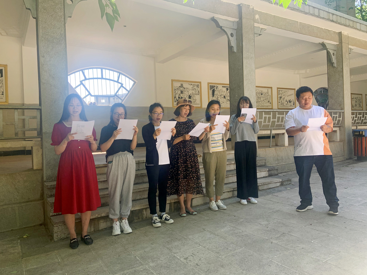 刘栋同志带领大家学唱《长征组歌:四渡赤水出奇兵》,深刻凝练的歌词、清新优美的曲调深入心扉,讴歌的是红军历尽艰险、终获胜利的革命精神,歌颂的是红军战士艰苦卓绝、英勇奋战的英雄气概,在这熟悉的旋律中,闪动的是真正的激情和最美的革命浪漫主义精神。
