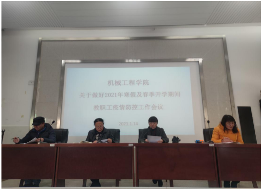 2021年1月14日,机械工程学院教职工大会在12栋阶梯教室召开,学院领导班子和全体教职工参加了此次大会。会议就做好2021年寒假及春季开学期间教职工、学生疫情防控工作提出相关要求。