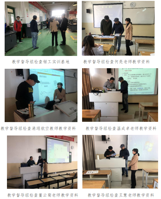 检查督导组同时对教师教学资料准备、实训教学设备仪器耗材准备、教师是否按时到岗、教材到位、授课计划填写、信息化教学平台使用情况、实训设备运行及教学秩序等情况也进行了详查。