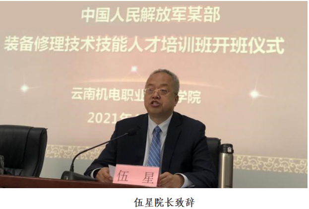 伍星院长代表学院向前来参加开班仪式的部队领导和同志们表示热烈欢迎。并阐述了军民融合国家战略的重大现实意义,介绍了我院的发展历史、荣誉、办学特色和实力,同时阐述了部队和学校双方在技术技能人才培养方面展开深入合作的可行性、必要性和迫切性,明确了举办此次培训班的目的和要求,充分表达了对此次培训的殷切期望,为此次培训指明了方向。