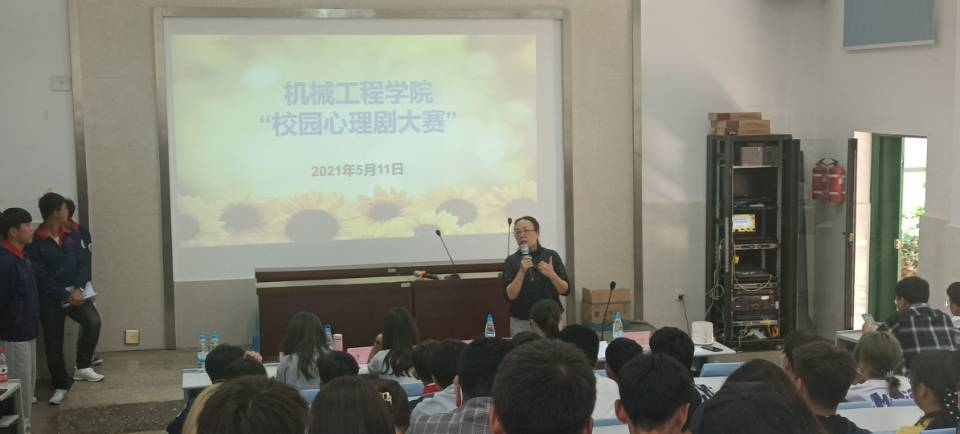 为了进一步推进学生心理健康教育工作、探索学生心理健康教育的新途径、丰富同学们的课余文化生活,机械工程学院于2021年5月11日12:30在12栋阶梯教室举办“心理剧大赛”活动,学院党总支书记李红到场并致辞,评委由周千舒、梁建美、代敏润等三位老师担任。