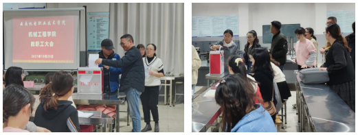 10月29日,机械工程学院干部任职试用期满考核述职大会在机械装调实训基地举行。学校组织部副部长李卫林带队对机械工程学院党总支专职副书记周利平同志任职试用期满进行考核,学院全体教师参加,会议由学院党总支书记李红主持。